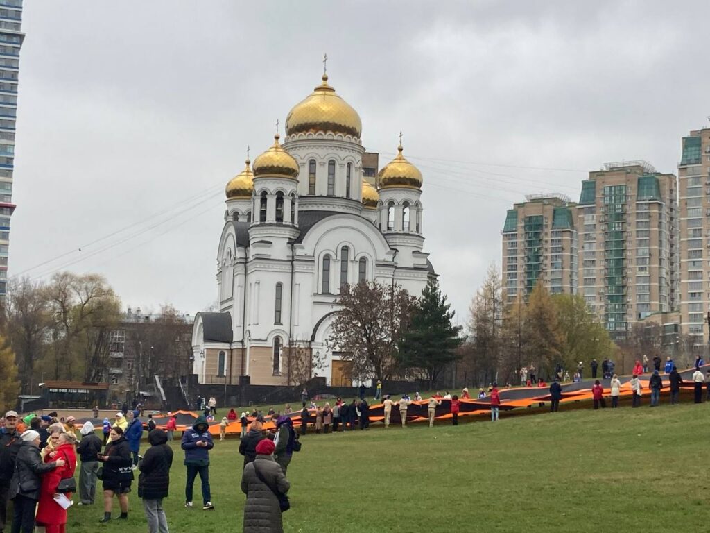 В СВАО мероприятия прошли в парке у Ростокинского акведука. Главным событием стал флешмоб «Георгиевская лента»: развернули трёхсотметровое полотно шириной шесть метров!
